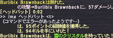 NMは戦士タイプで榴弾投げ(500dmg)を多用、耐火を上げても1度もレジれず敗戦。