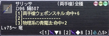 両手槍ウェポンスキル:命中+で最低値を引いちゃったので、