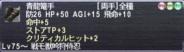 11:HQ3 攻+3 ストアTP+3 クリティカルヒット+3